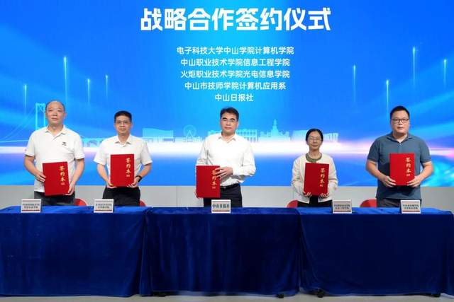 會上舉行了重要簽約儀式,中山四所高校與中山日報社簽約共建戰(zhàn)略合作,旨在深化產(chǎn)教融合,構(gòu)建高效人才生態(tài)鏈,為中山AI產(chǎn)業(yè)高質(zhì)量發(fā)展提供人才保障,助力智能化升級。